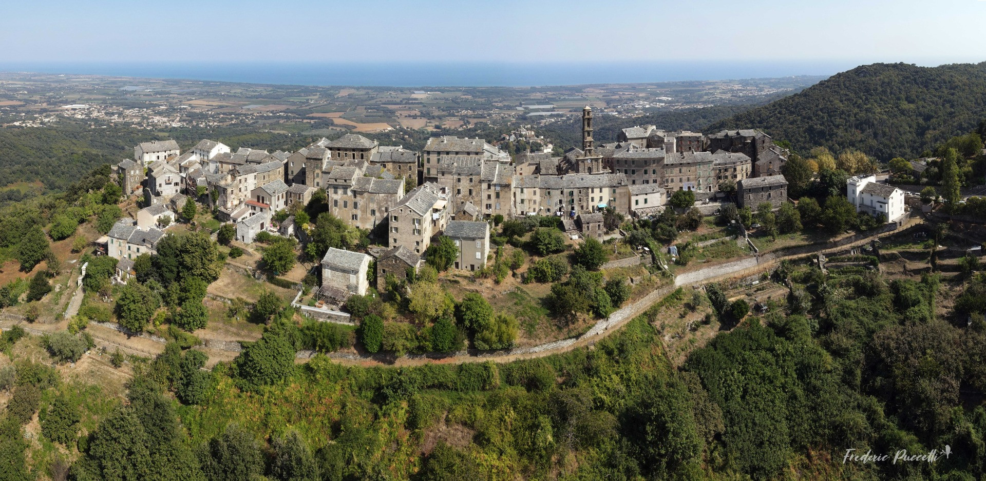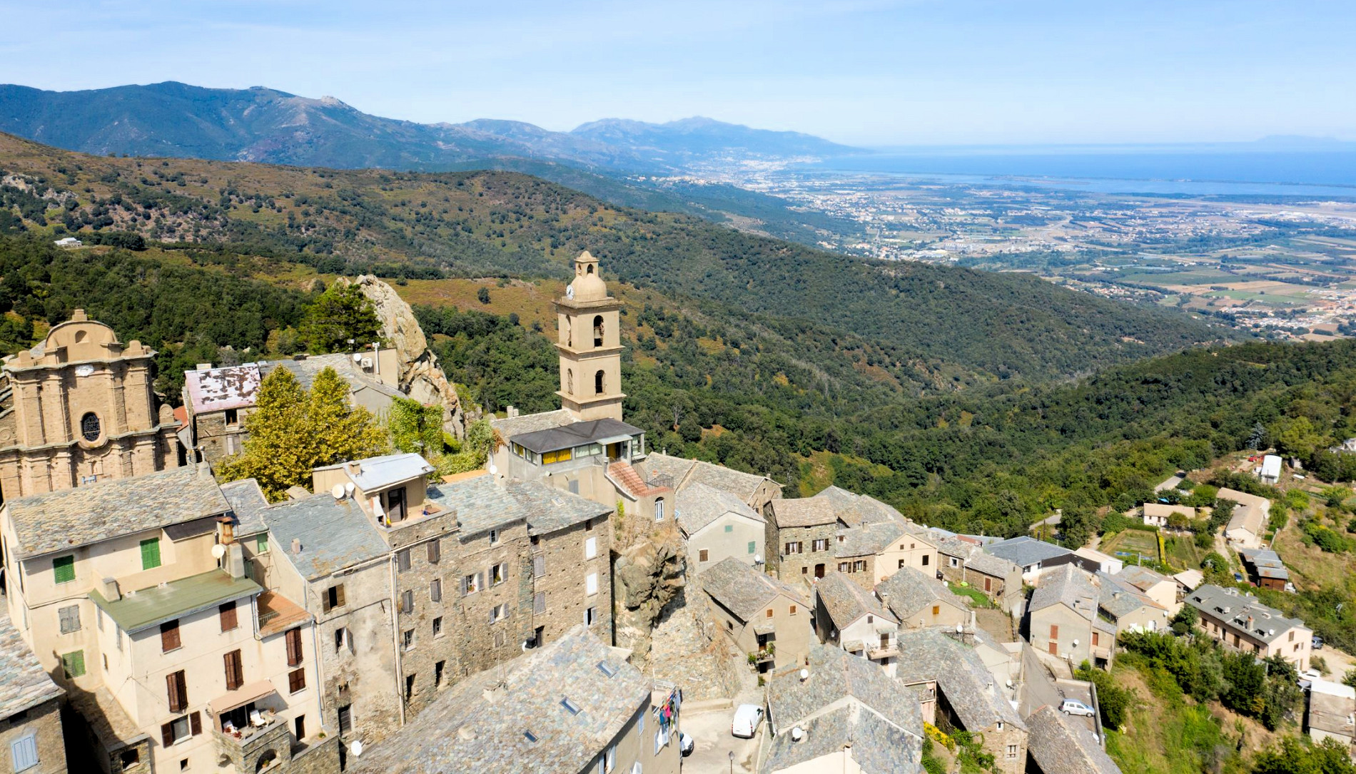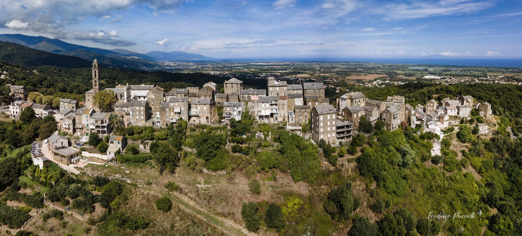 Le village de Penta-di-Casinca, véritable nid d'aigle perché à 400m d'altitude, domine toute la plaine orientale et offre une vue panoramique incomparable sur la Mer Tyrrhénienne.