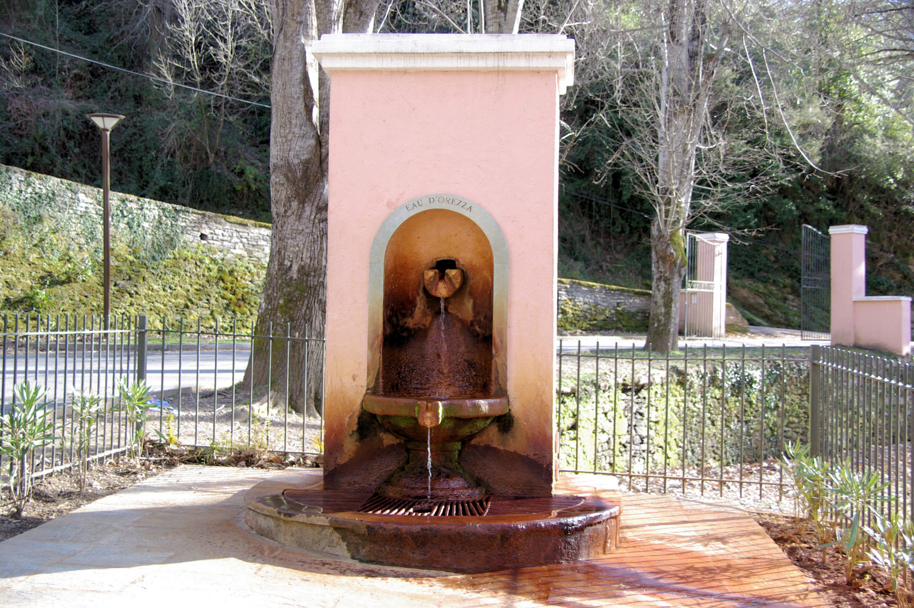 La source d'Orezza est située dans la Castagniccia, à 24 km de notre propriété, sur la commune de Rapaggio. Connue depuis l'Antiquité, l'eau d'Orezza était déjà savourée par les Romains, qui en appréciaient les qualités exceptionnelles. Elle est reconnue comme l'une des eaux les plus riches en fer au monde.