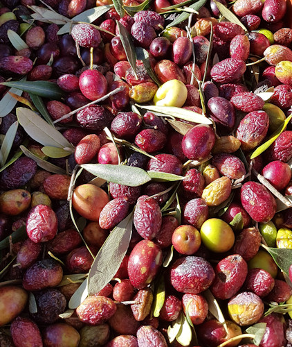 Les olives sont récoltées manuellement à partir du mois de novembre de chaque année, pour être cueillies à maturité et produire une huile douce et fruitée. Une fois décantée, l'huile d'olive est vendue uniquement sur place, à la propriété, en bouteilles de 75 cl ou en bidons de 5 litres.